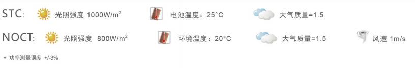 | STC測試條件:大氣質(zhì)量AM1.5,輻照度1000W/m2,電池溫度25℃,功率測量誤差+/-3% | ||||||||||||||||